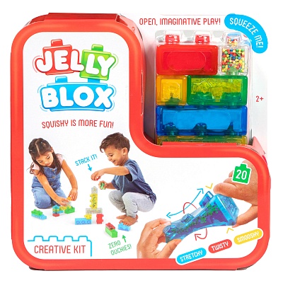 Jelly Blox - Набор для творчества от Goliath, состоящий из 20 блоков — это мягкий безопасный конструктор, который сочетает в себе приятную желеобразную текстуру и безграничные возможности для творчества. Набор представляет собой систему блоков, подходящих по возрасту как для малышей, так и для дошкольников, которые можно сжимать, растягивать и давить. Набор станет отличным помощником в развитии мелкой моторики и воображения у ребёнка. • Набор имеет яркий дизайн — включает разноцветные желеобразные блоки необычной формы; • Игрушка имеет приятную текстуру: мягкие, упругие блоки дают необычные тактильные ощущения; • Несколько специальных блоков имеют забавные сенсорные наполнители, такие как песок, пенопластовые шарики, мини-звезды и мини-кирпичи, которые делают игру еще веселее; • Набор способствует развитию креативного мышления и мелкой моторики; • В наборе 20 блоков разной длины и формы, которые можно комбинировать во множество фигур; • Конструктор разработан для поддержки ключевых этапов развития с помощью тактильной и сенсорной игры; • Jelly Blox— это революция среди конструкторов, а также единственный конструктор, который «меняет правила», ведь его можно сжимать, растягивать и давить; • Набор полностью совместим с другими сериями конструктора Jelly Blox, что позволяет расширять игровые возможности; • Jelly Blox не только прошли проверку на безопасность для детей, но и родителям теперь не страшно наступить босыми ногами на детали, ведь они мягкие; • Набор изготовлен из нетоксичных материалов, приятных на ощупь. • Блоки легко очищаются водой с мылом; Характеристики: • Рекомендуемый возраст: 3+